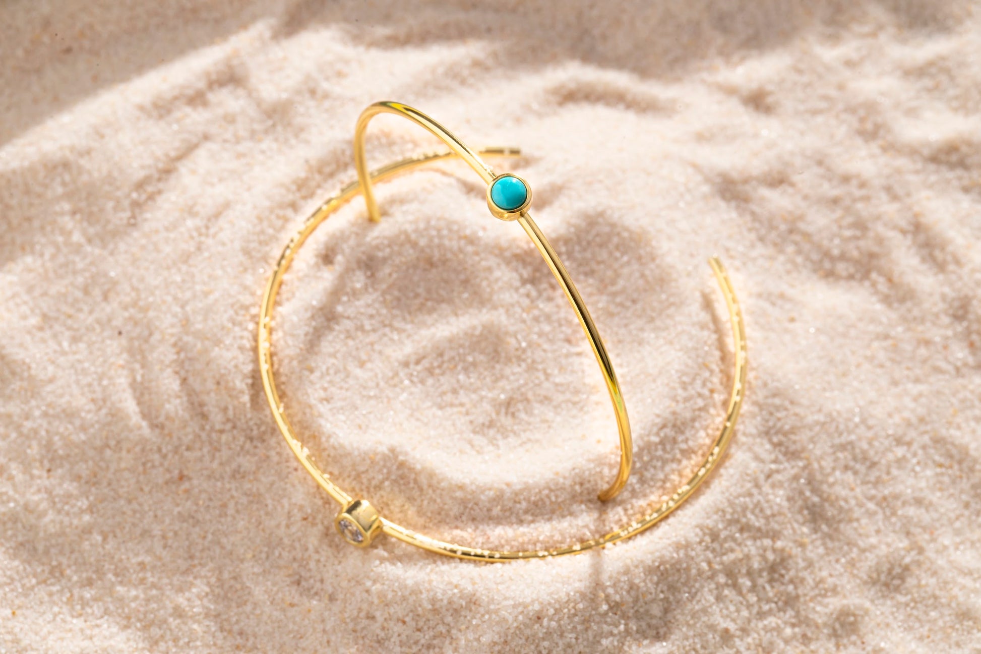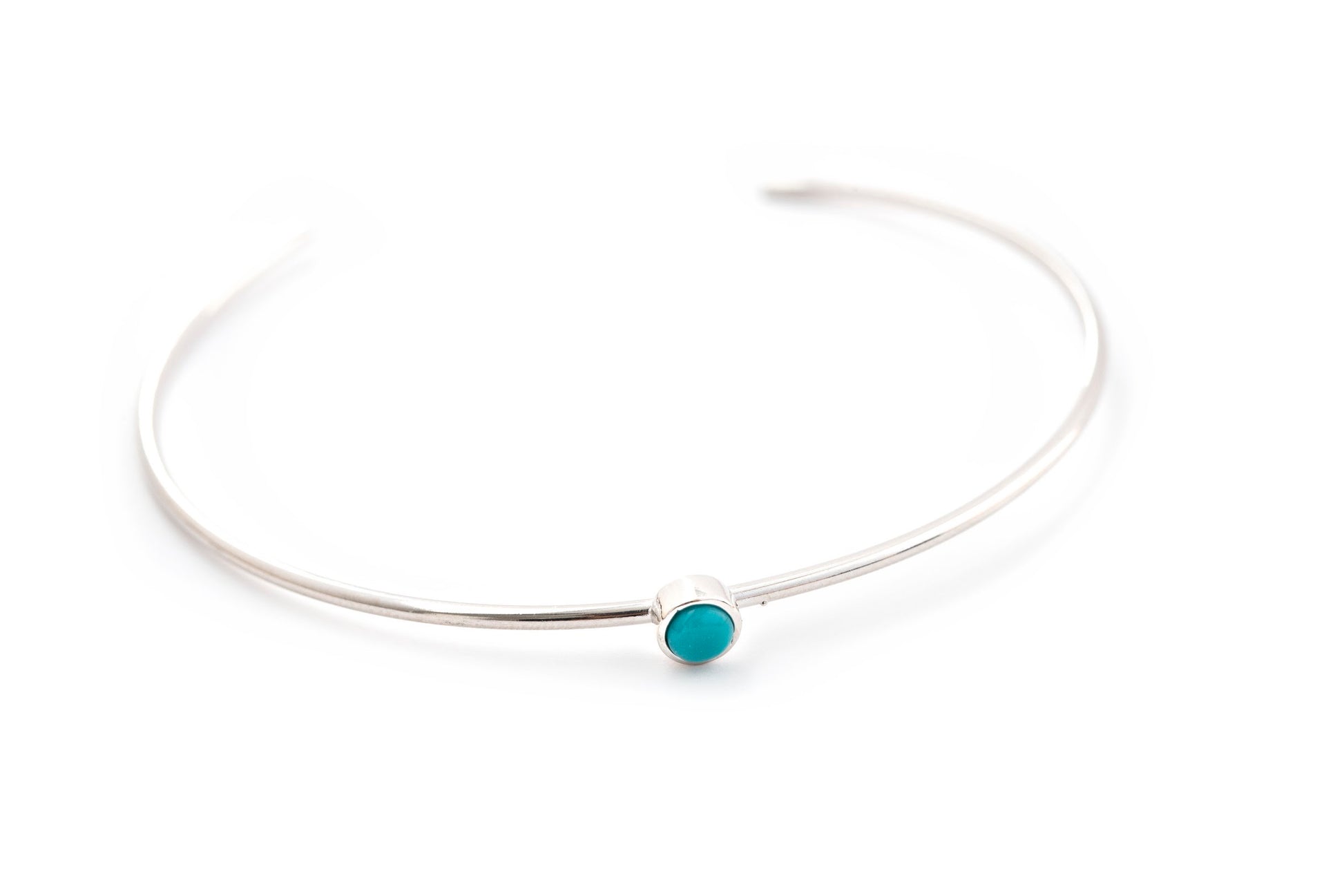 A minimal bangle with teal stone. Perfect for stacking with other bracelets.