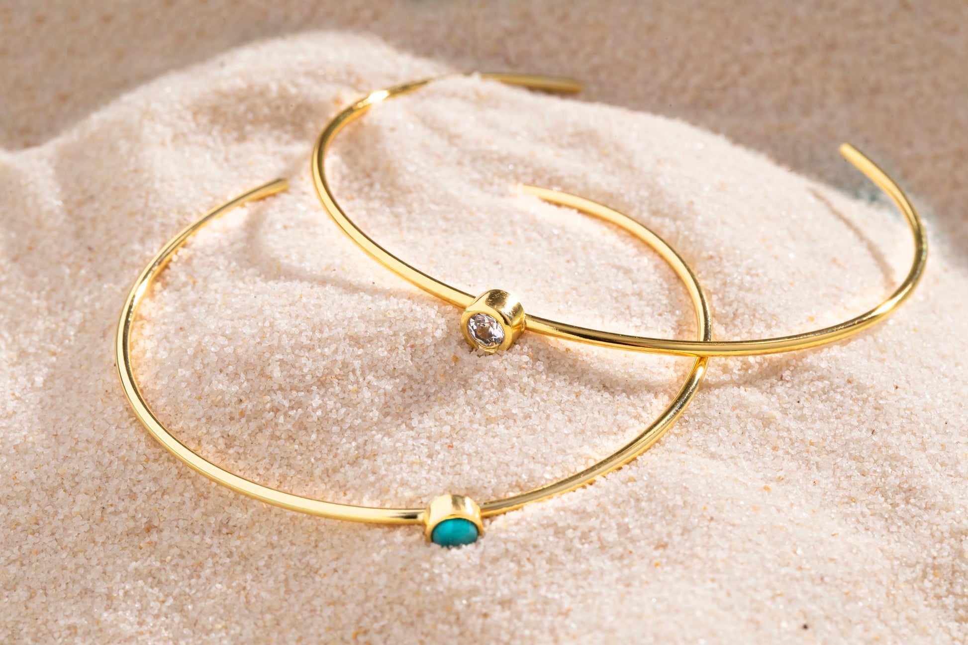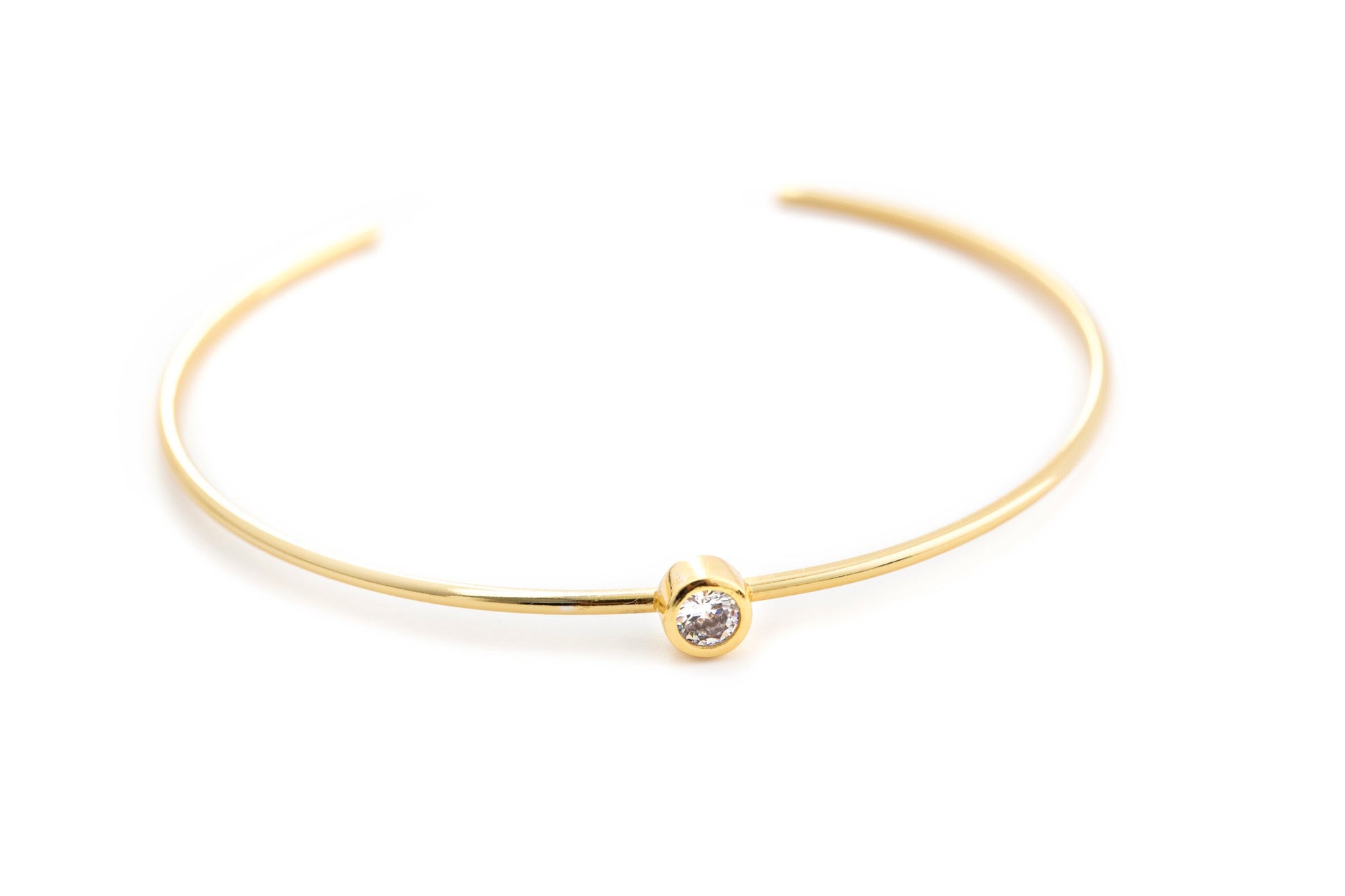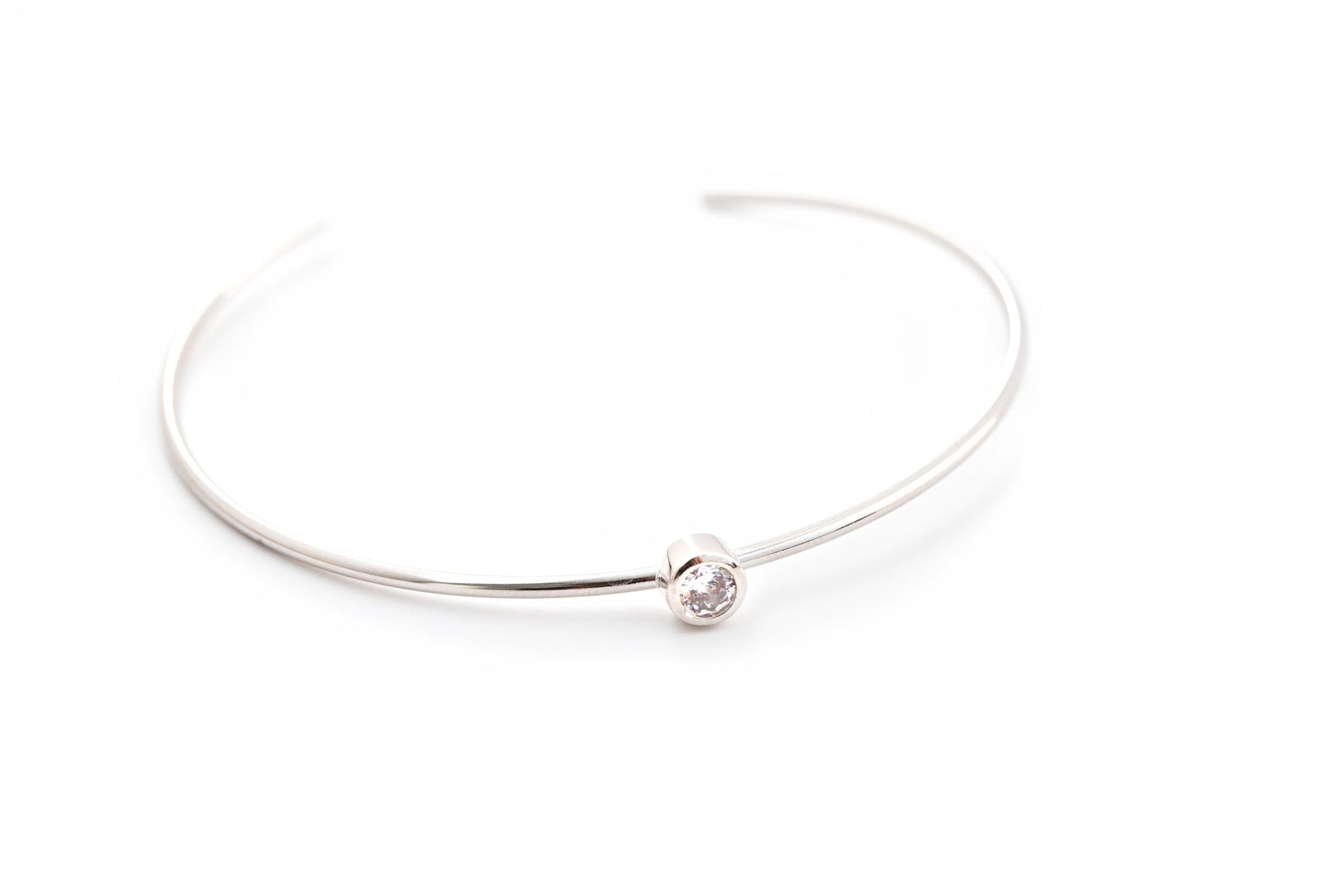 A minimal bangle with cz stone. Perfect for stacking with other bracelets.