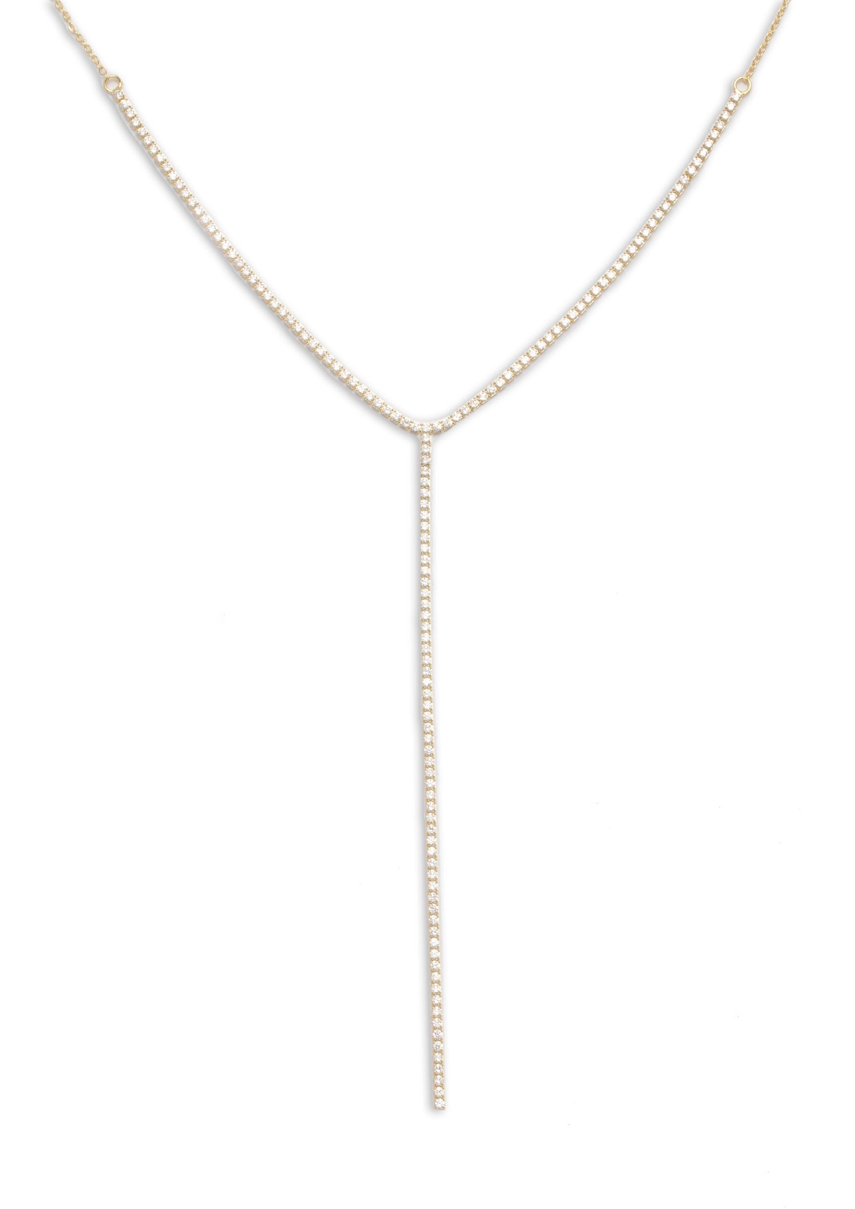 A sparkly tennis necklace perfect for low cut dresses.