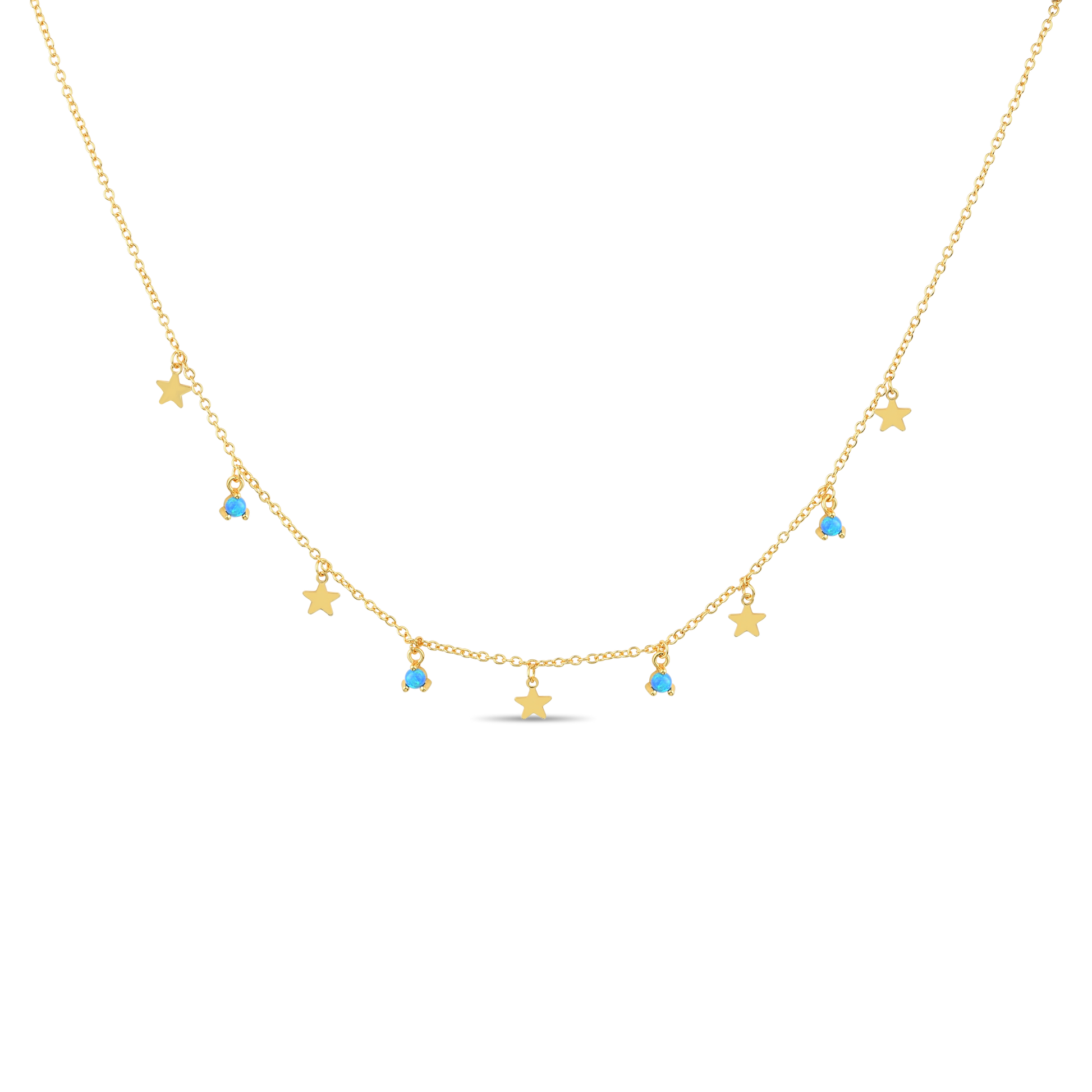 A a delicate necklace with hanging stars and blue opals, reminding you that you were seeded from the stars.